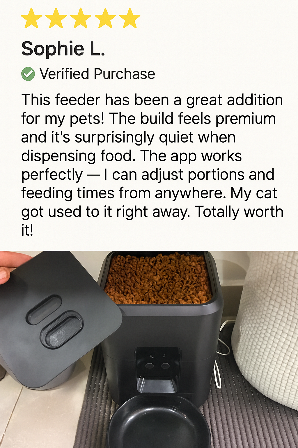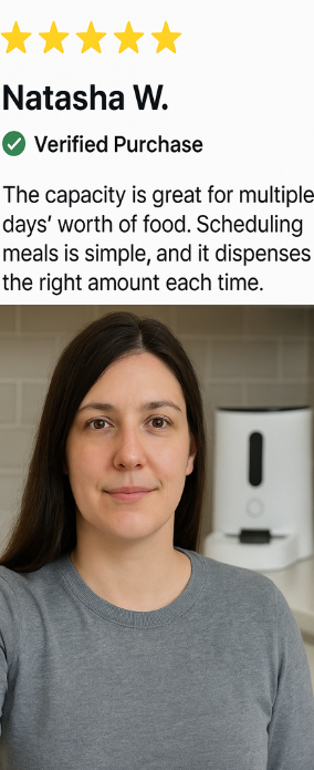 Trasforma la routine alimentare del tuo animale domestico con una tecnologia intelligente, che ti consente di programmare i pasti e monitorare le sue abitudini alimentari ovunque tu sia, tramite un'app intuitiva.
